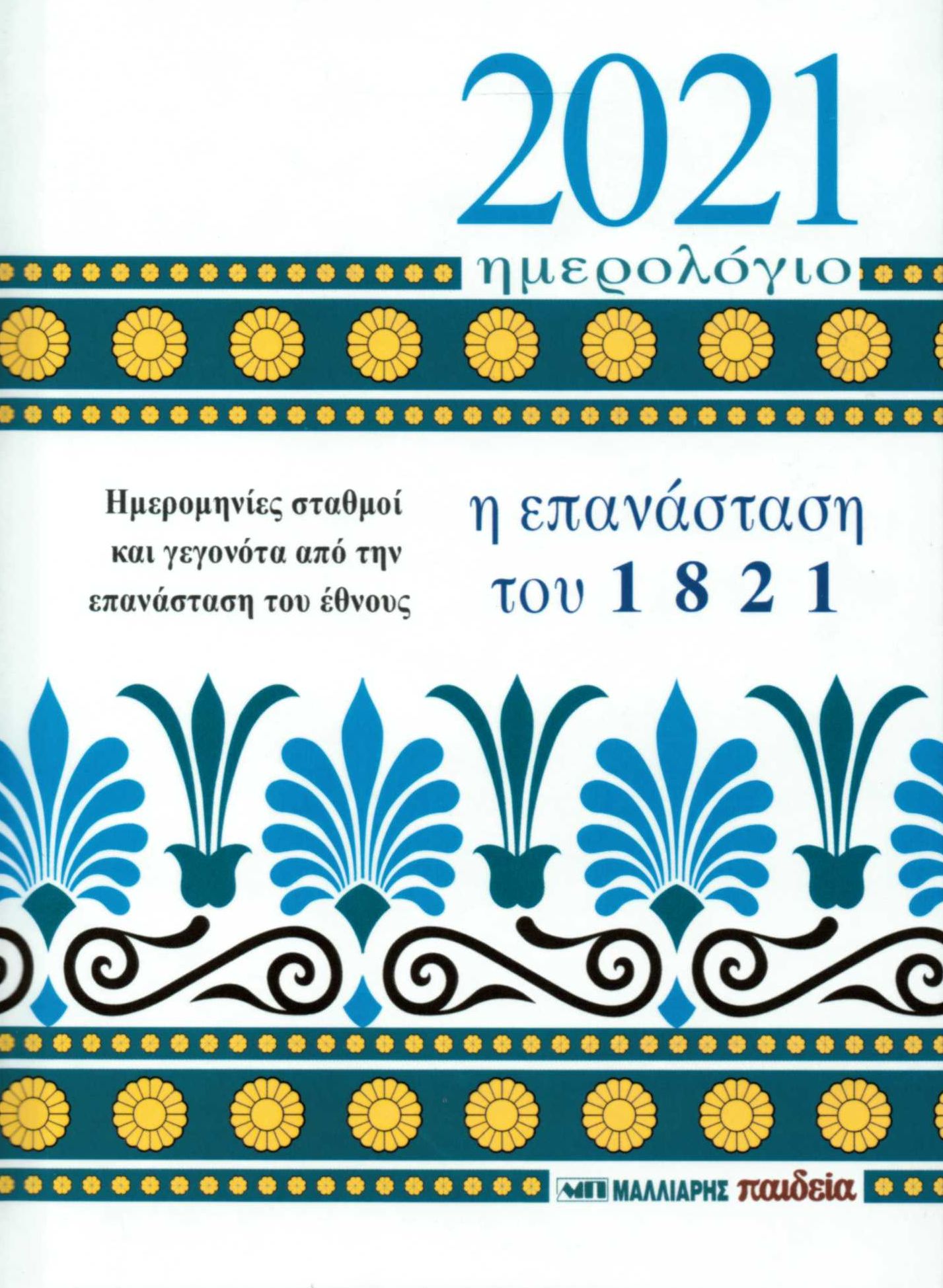 Ετήσιο ημερολόγιο 2021 με σκληρό εξώφυλλο και ημερομηνίες σταθμούς και γεγονότα από την επανάσταση του έθνους.