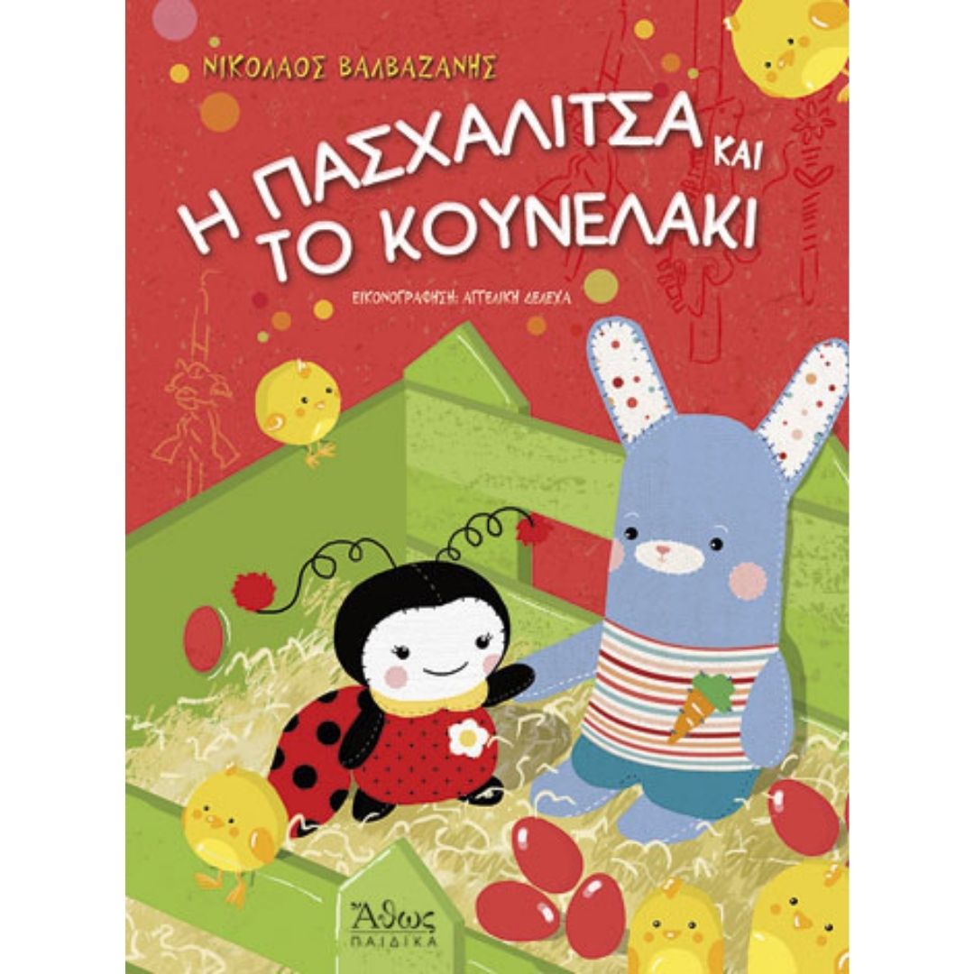 Η Παιχνιδούπολη του κυρ-Μανώλη ήταν το πιο όμορφο κατάστημα της γειτονιάς. Eίχε αμέτρητα παιχνίδια για μικρά και μεγάλα παιδιά. Φέτος ειδικά ο κυρ-Μανώλης πήρε πολύχρωμα κομμάτια ύφασμα και έφτιαξε μόνος του μία κόκκινη πασχαλίτσα και ένα χρωματιστό κουνελάκι. Ήταν τόσο όμορφα τα δυο ζωάκια, που αποφάσισε να τα βάλει να κρατιούνται χέρι-χέρι στο κέντρο της μεγάλης βιτρίνας. Το Μεγάλο Σάββατο το πρωί, ο κυρ-Μανώλης πήρε την πασχαλίτσα, την έβαλε σ’ ένα πολύχρωμο κουτί, το τύλιξε και το προσέφερε στην μικρή Αντιγόνη μαζί με τη λαμπάδα που της αγόρασε η νονά της. Θα ξανασυναντηθούν άραγε πάλι οι δύο αχώριστοι φίλοι μας; Και η προσευχή της μικρής Αντιγόνης, άραγε θα φτάσει ως τον ουρανό; Είναι αλήθεια ότι ο Χριστός αγκαλιάζει τα μικρά παιδιά όταν ζητούν τη βοήθειά του; Το βιβλίο του Νίκου Βαλβαζάνη, τρυφερό, μεστό από νοήματα, φιλοτεχνημένο με τις πολύχρωμες ζωγραφιές της Αγγελικής Δελεχά είναι ένα πολύ όμορφο δώρο που μπορεί να συνοδεύσει την πασχαλινή λαμπάδα!
